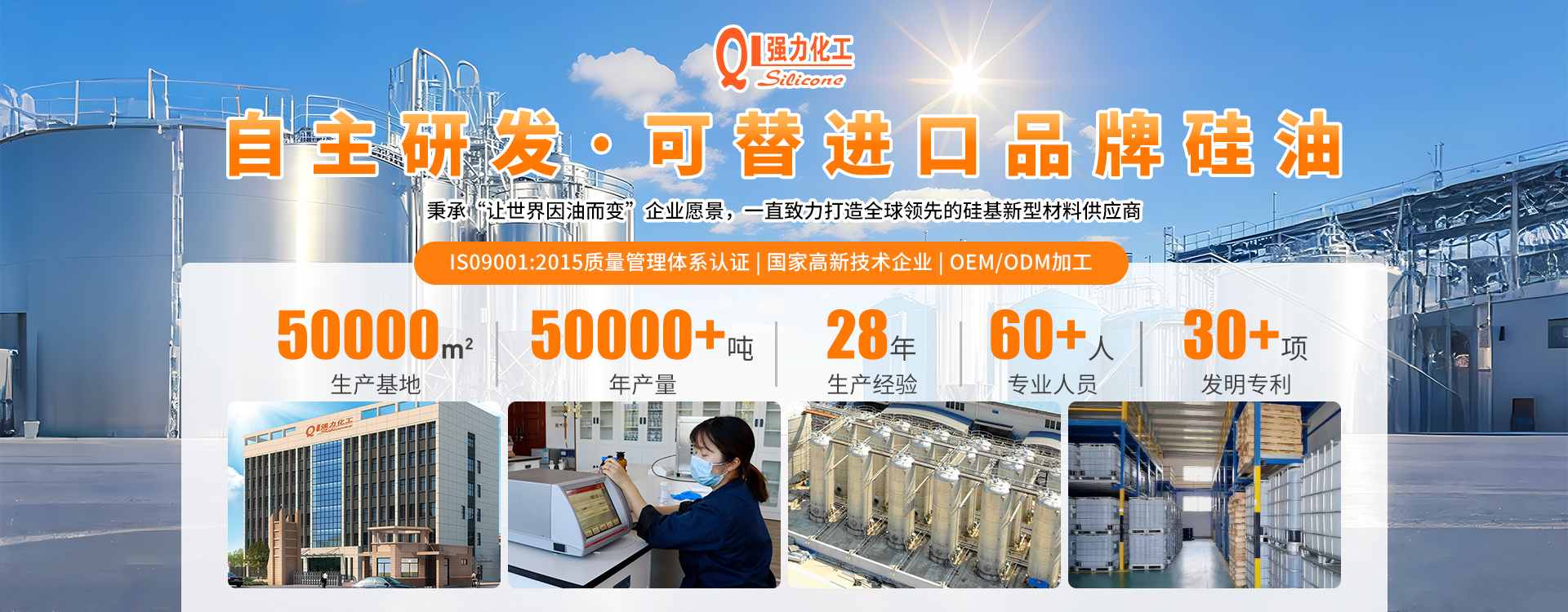 ◎ 黃山市強力化工有限公司是一家專注于有機硅新材料,集研發、生產與銷售為一體的綜合性高新技術企業。公司已是有機硅行業內較為知名的品牌,傾力于打造高品質有機硅產品:二甲基硅油、乙烯基硅油、氨基硅油、乳化硅油、羥基硅油、含氫硅油與紡織品硅油等。砥礪前行,踔厲奮發,強力純硅油,更高技術,更好硅油。秉承“讓世界因油而變”企業愿景,一直致力打造全球領先的硅基新型材料供應商。